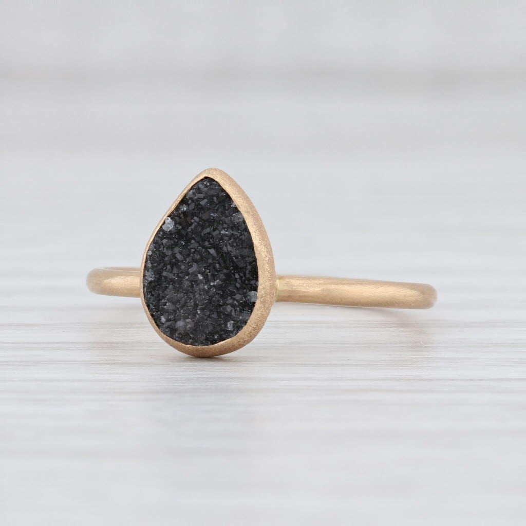 New Nina Nguyen Black Druzy Quartz 18k Yellow Gold Size 7 Teardrop