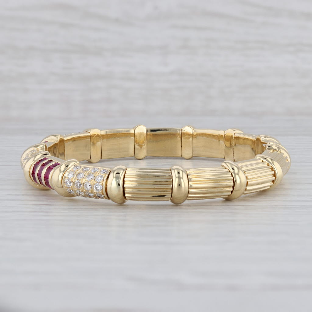 3.90ctw Ruby Diamond Cuff Bangle Bracelet 18k Yellow Gold 6.5"
