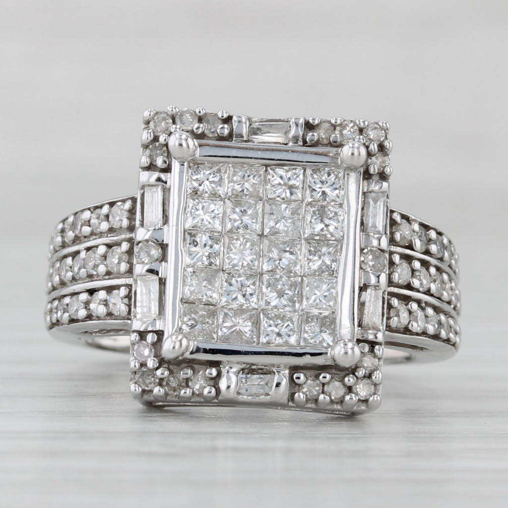 0.89ctw Diamond Princess Halo Engagement Ring 14k White Gold Size 7