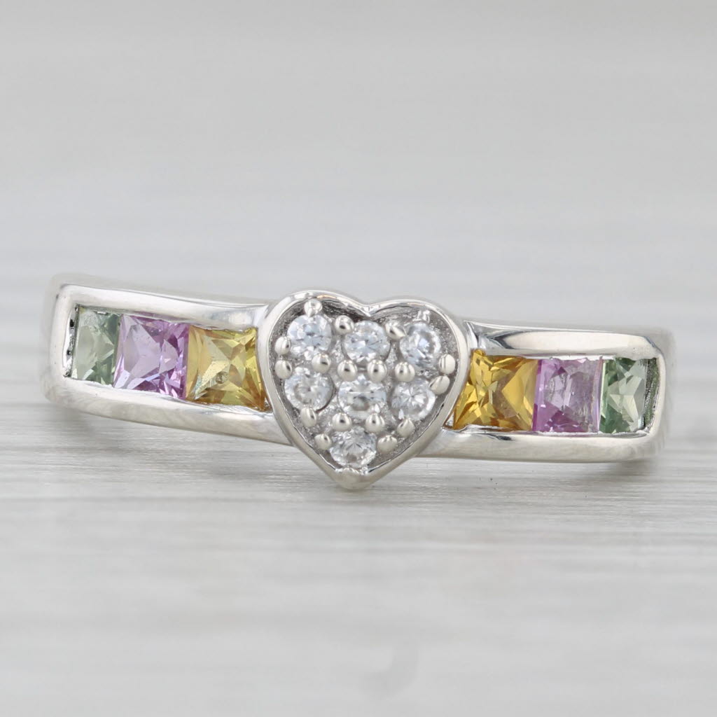 0.70ctw Rainbow Sapphire Ring 14k White Gold Size 7 Stackable