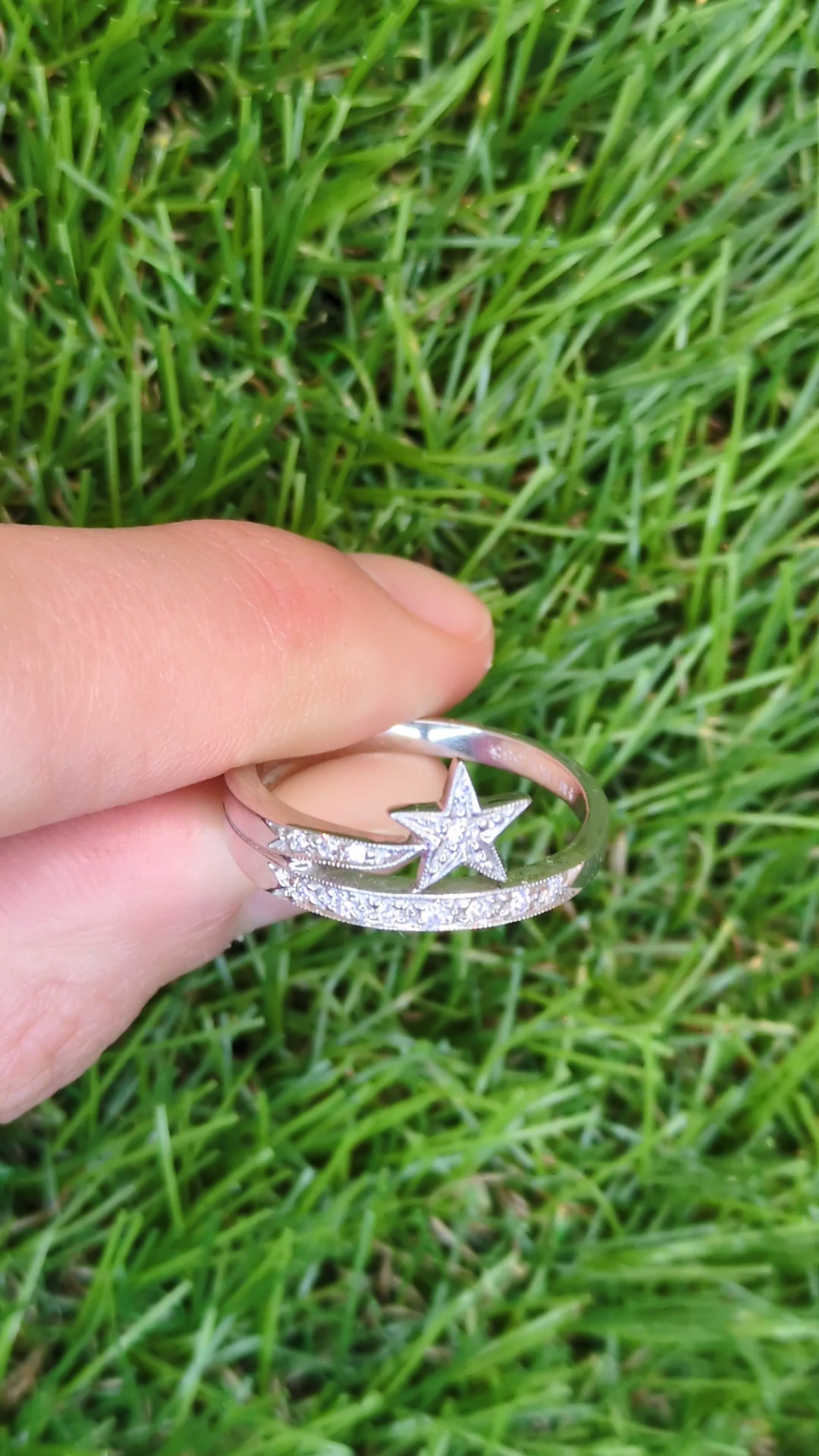 0.10ctw Diamond Shooting Star Ring 14k White Gold Size 8.5 Stackable
