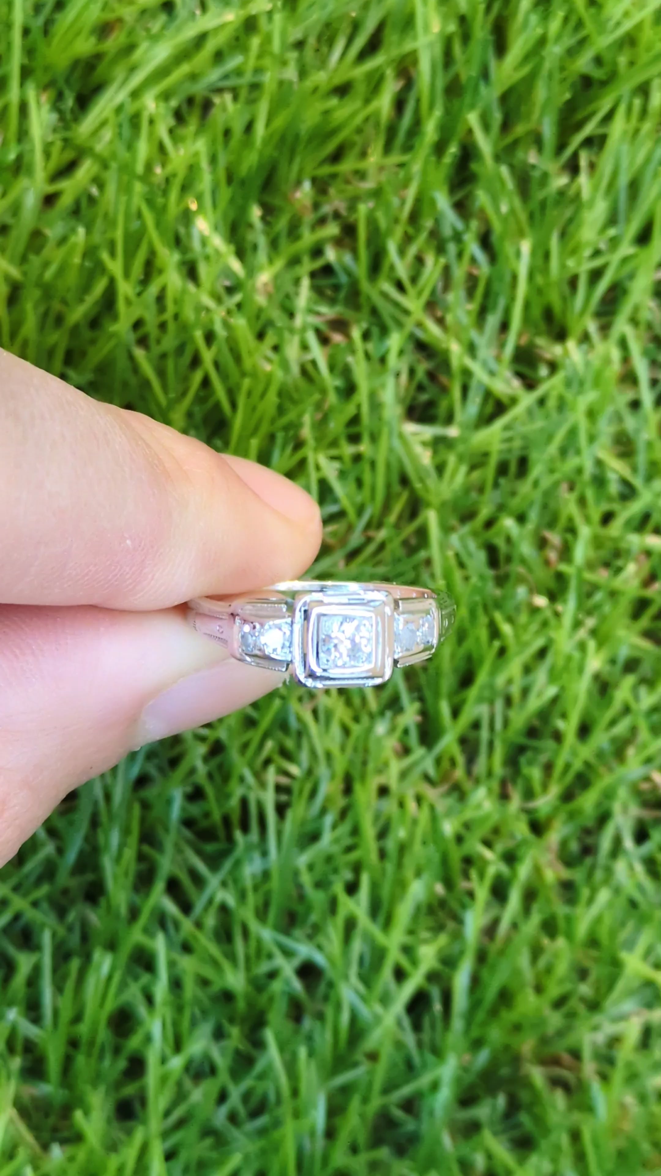 0.18ctw Diamond Engagement Ring 18k White Gold Size 5 Vintage