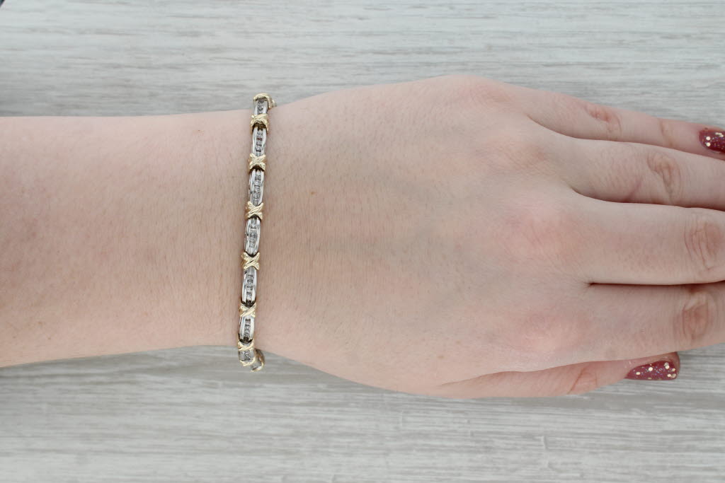 0.30ctw Diamond Bar X Link Bracelet 10k White Yellow Gold 7.25" 5mm