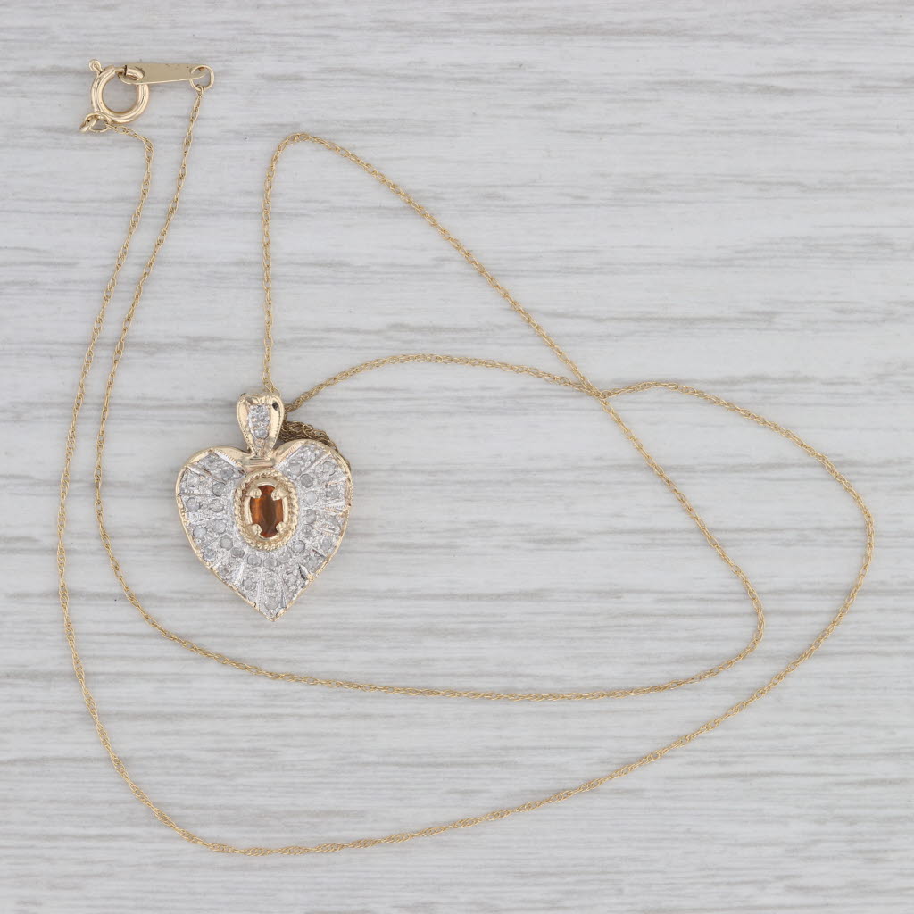 0.32ctw Citrine Diamond Heart Pendant Necklace 10k Yellow Gold 18.75" Rope Chain