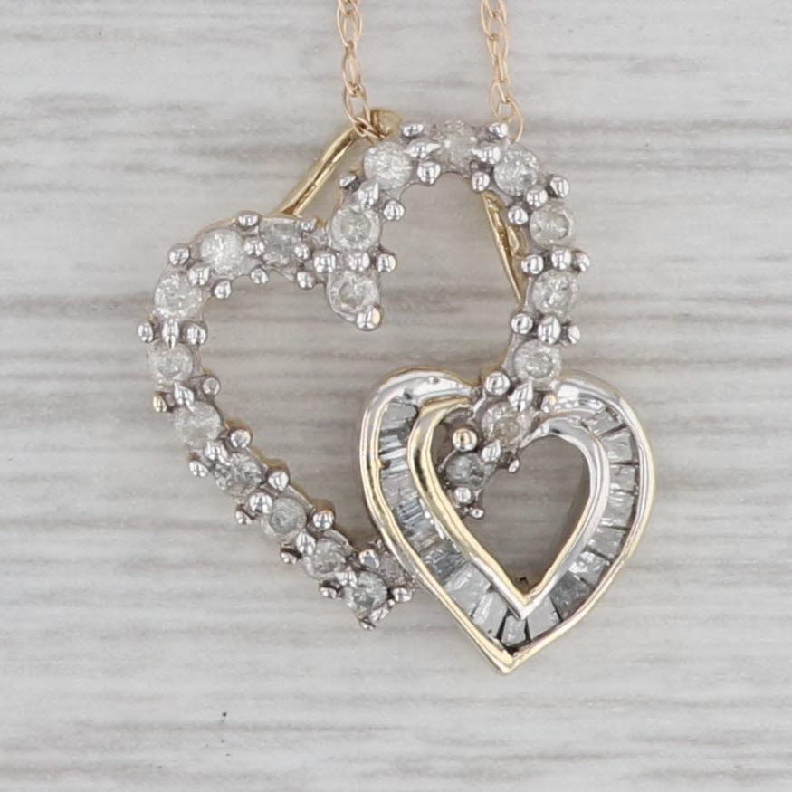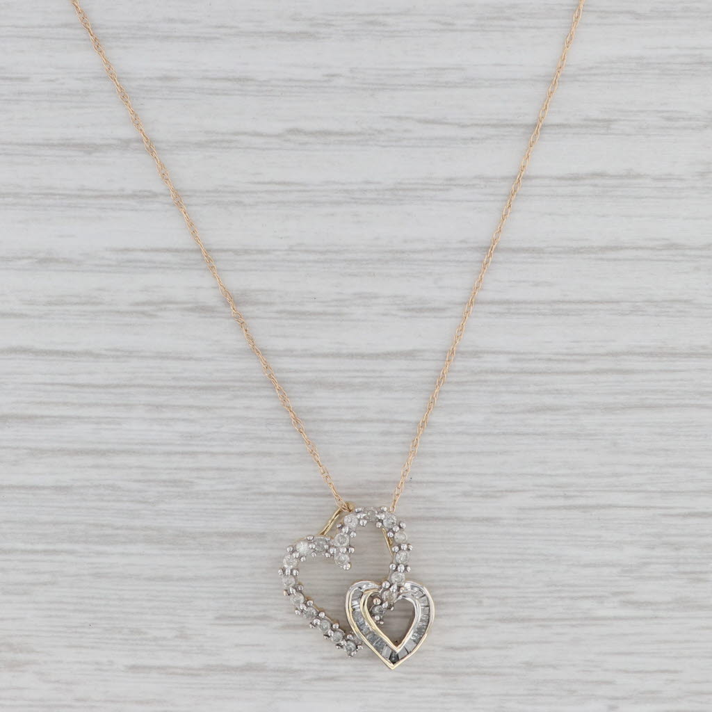 0.42ctw Diamond Interlocking Heart Pendant Necklace 10k Gold 19" Rope Chain