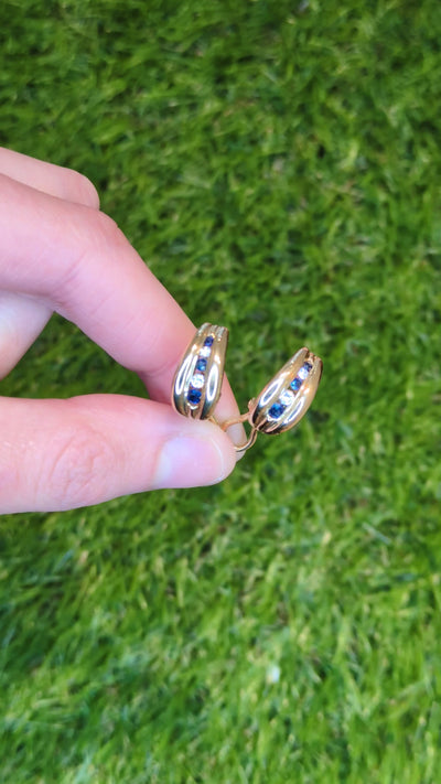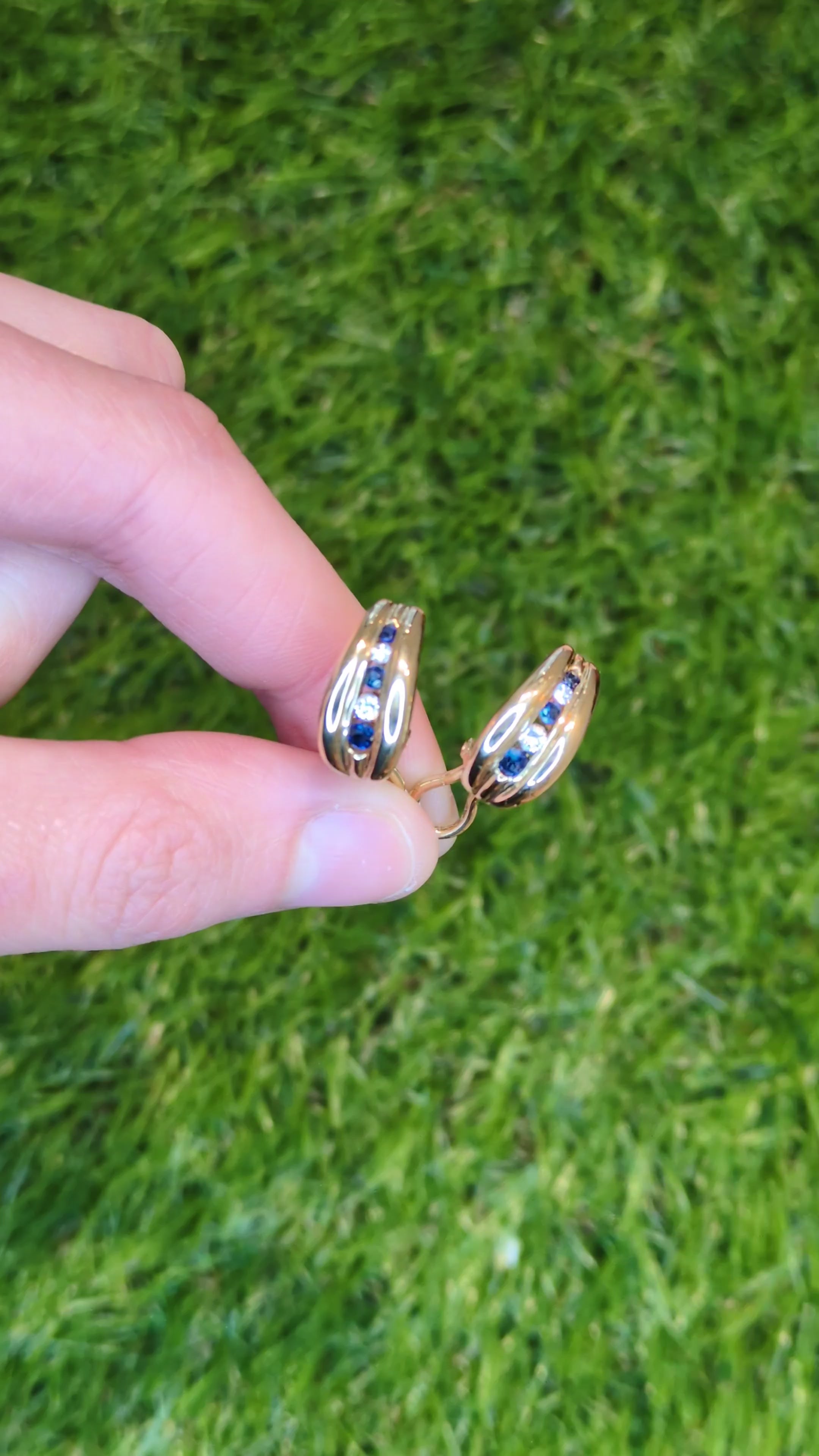 0.46ctw Blue Sapphire Diamond J-Hook Earrings 14k Gold Drops Omega Backs