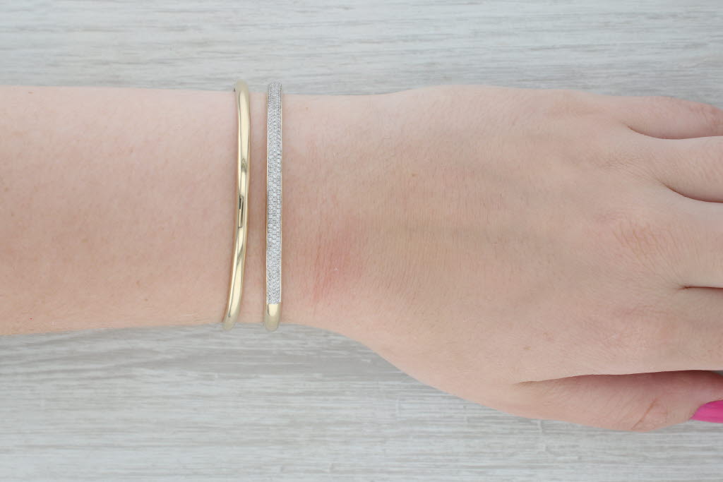 0.55ctw Diamond Hinged Double Cuff Bracelet 14k Yellow Gold 7"