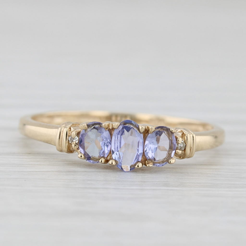 0.65ctw Tanzanite Diamond Ring 10k Yellow Gold 3-Stone Stackable Size 8.25