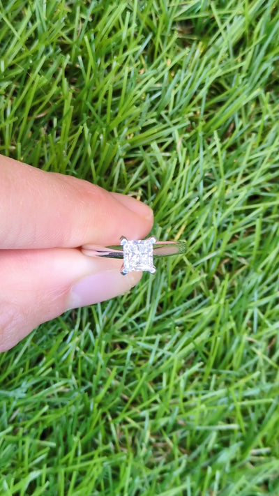 0.70ct VS2 Square Princess Diamond Solitaire Ring 14k White Gold Size 5.5 GIA