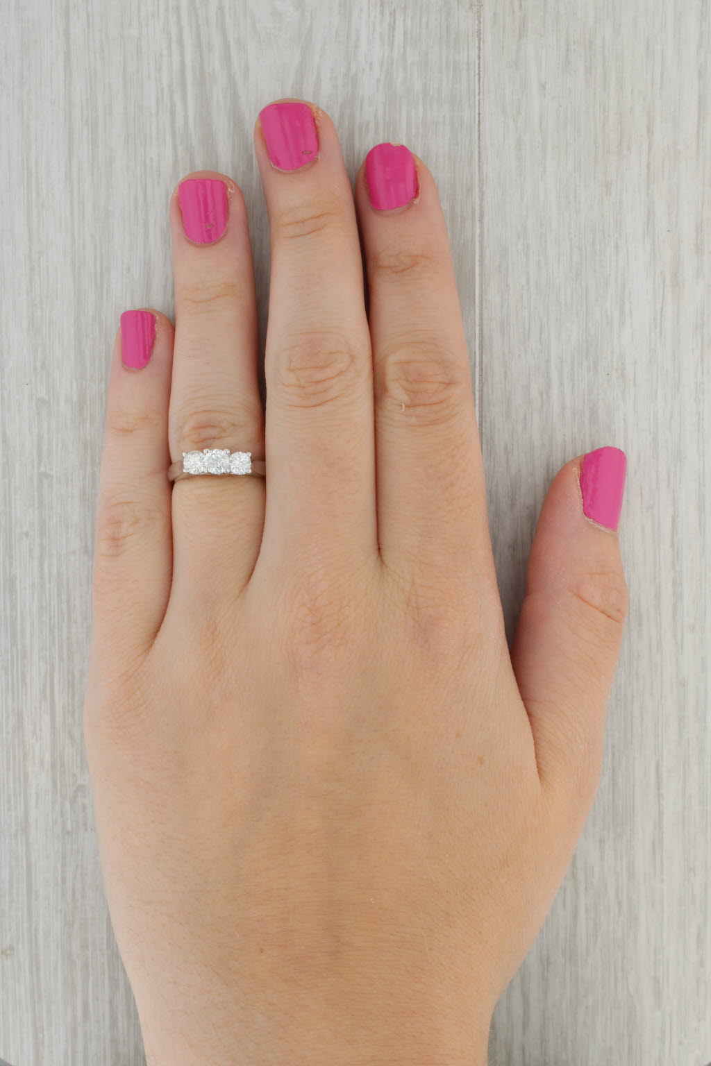0.87ctw Round 3-Stone Engagement Ring 14k White Gold Size 7
