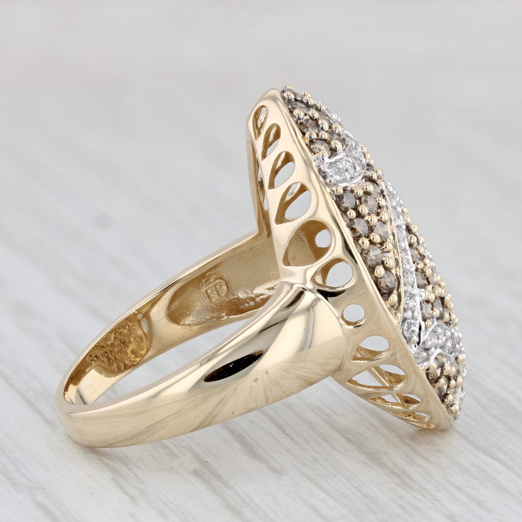 1.09ctw Yellow White Diamond Pave Swirl Cluster Ring 14k Yellow Gold Cocktail