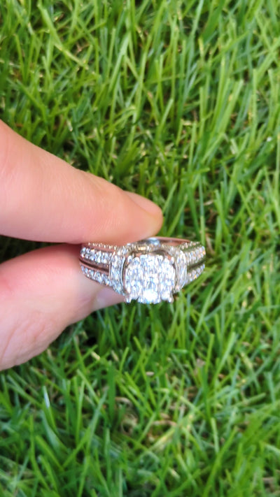 1.14ctw Diamond Cluster Engagement Ring 14k White Gold Size 7 Cathedral