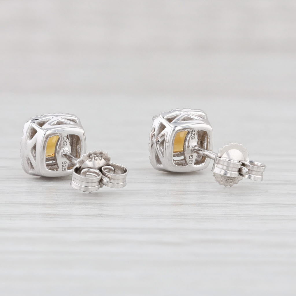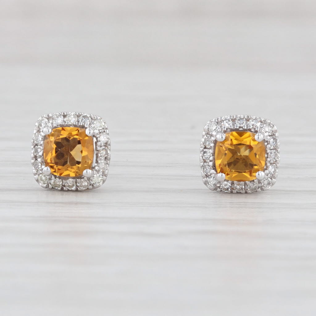 1.14ctw Orange Citrine Diamond Halo Earrings Necklace Set Sterling Silver 18"