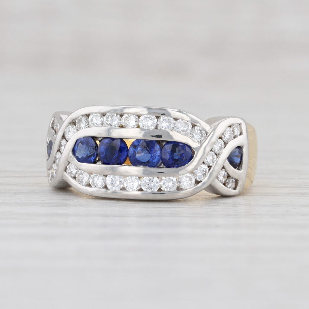 1.1ctw Blue Sapphire White Diamond Ring 18k Gold Platinum Size 5.5