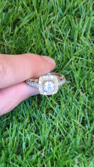 1.30ctw Round Diamond Halo Engagement Ring 14k White Yellow Gold Size 6 GIA