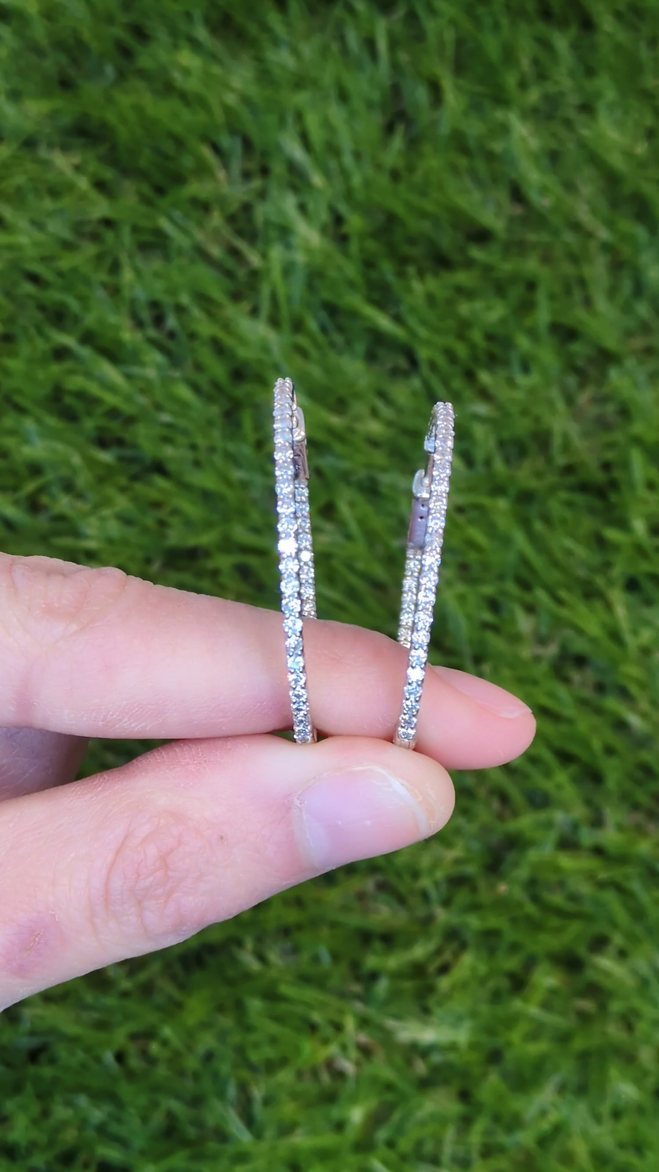 1.50ctw Diamond Inside Out Hoop Earrings 14k White Gold Snap Top Round Hoops