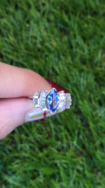 1.50ctw Marquise Tanzanite Diamond Ring 14k White Gold Size 7