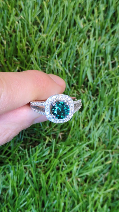 1.86ctw Round Teal Diamond Halo Engagement Ring 18k White Gold Size 7.75 IGI