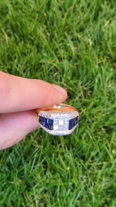1.94ctw Blue Sapphire Diamond Ring 18k Gold Size 6.75 Cocktail