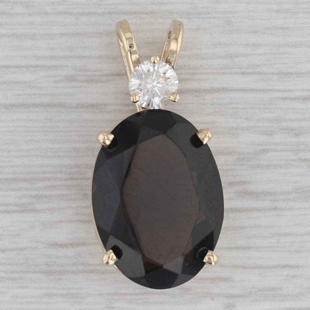 10.77ctw Oval Smoky Quartz Diamond Pendant 14k Yellow Gold