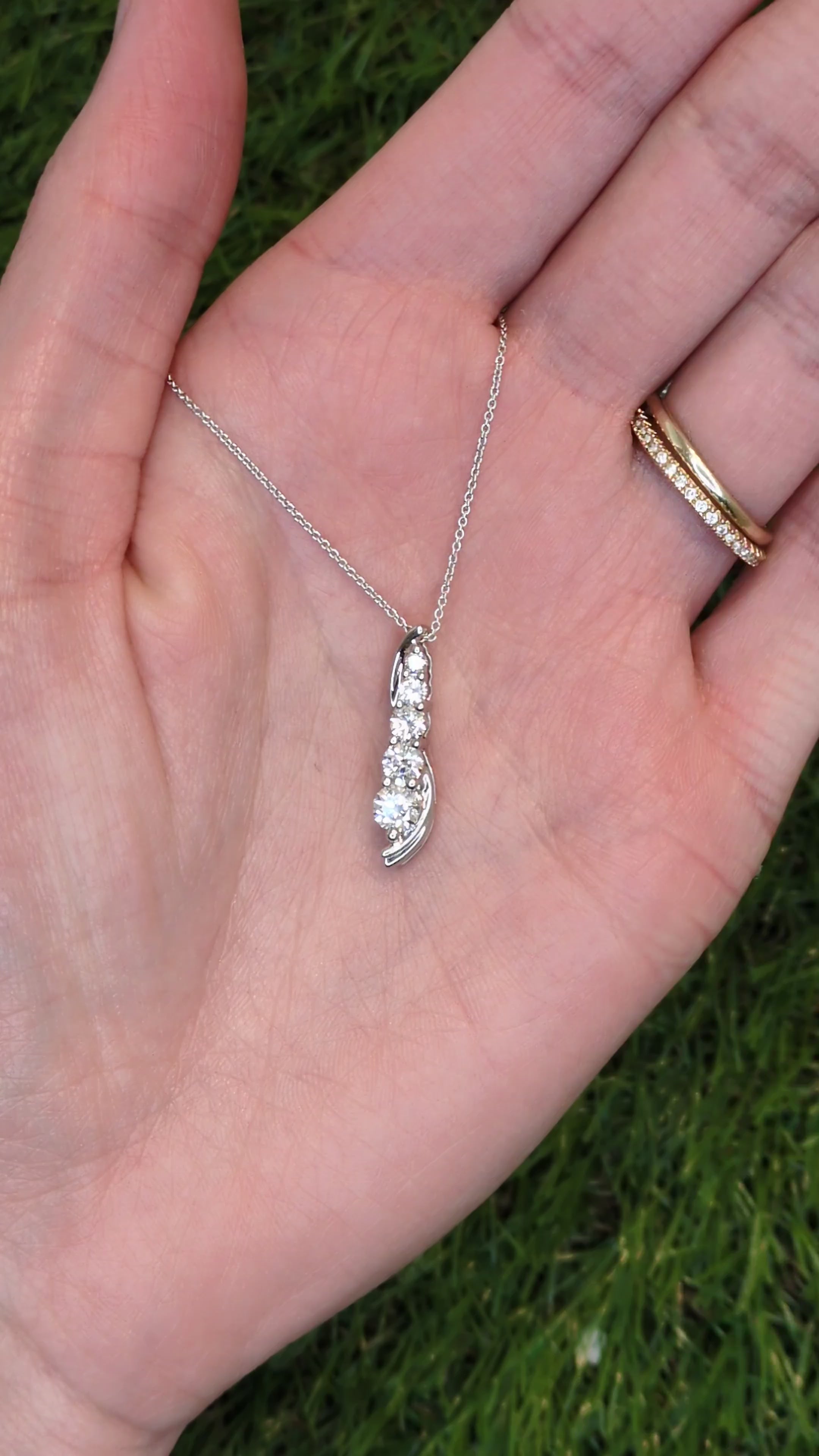 1ctw Graduated Diamond Journey Pendant 14k White Gold