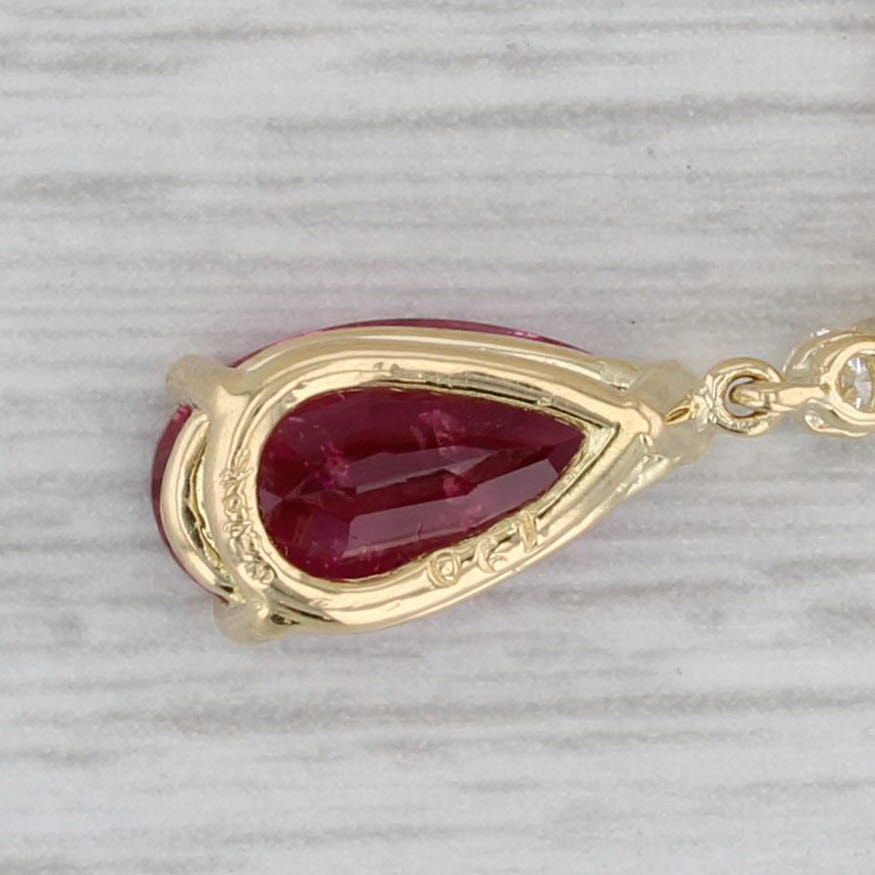 2.04ctw Rubelite Tourmaline Diamond Pendant Necklace 18k 14k Gold Cable Chain