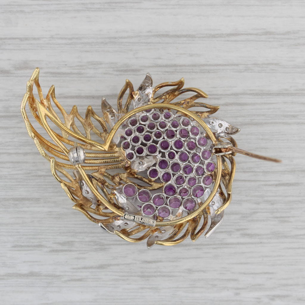 2.54ctw Pink Sapphire Diamond Brooch 18k Yellow Gold Statement Pin