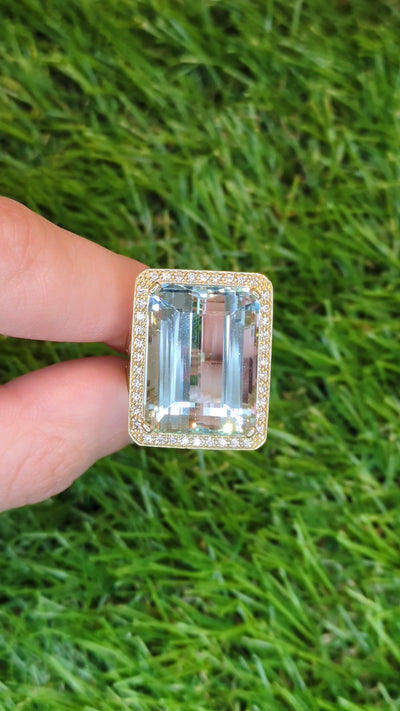 24.45ctw Aquamarine Diamond Halo Ring 14k Yellow Gold Size 6 Cocktail