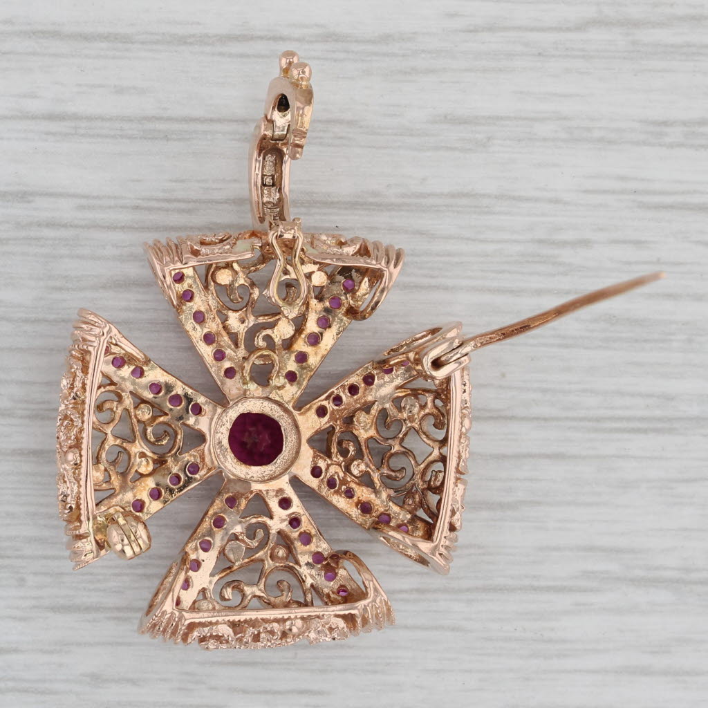 2ctw Red Garnet Pink Sapphire Filigree Cross Pendant Brooch 14k Rose Gold