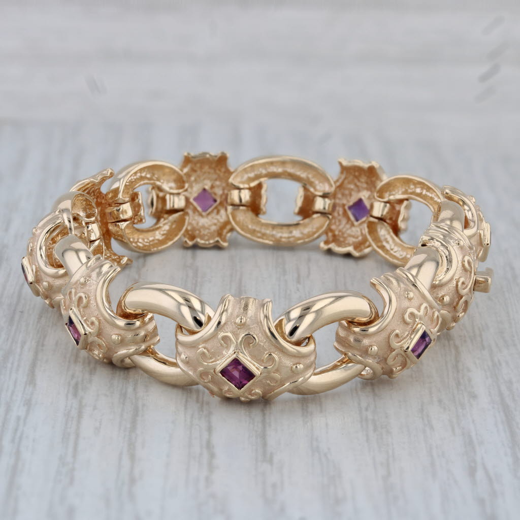 3.22ctw Dankner 1.64ctw Amethyst Garnet Bracelet 14k Yellow Gold 6.75"