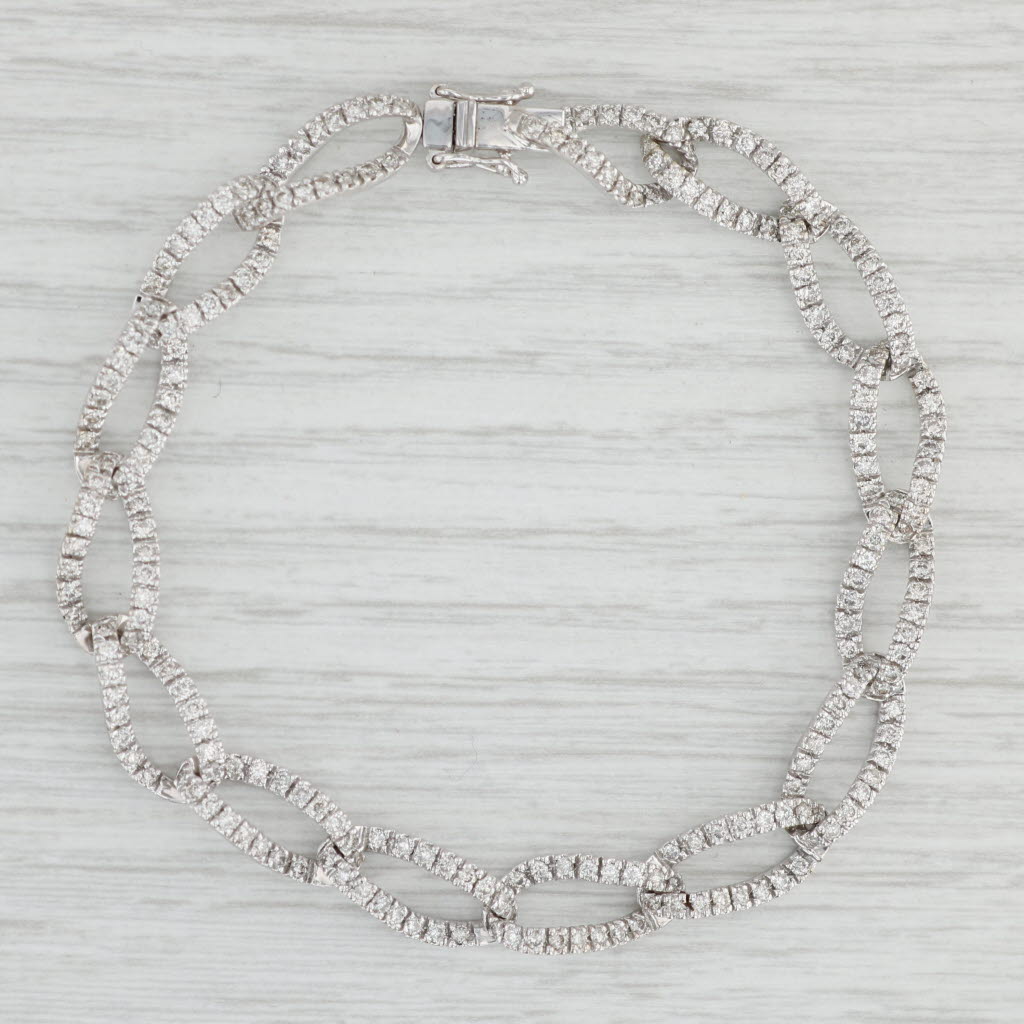 3ctw Diamond Curb Chain Bracelet 14k White Gold 7.75" 8.3mm