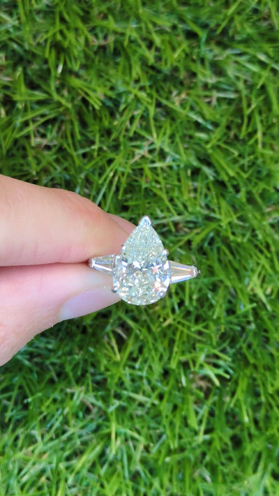 4.99ctw Pear Diamond Teardrop Engagement Ring Platinum Size 5 Arthritic Band GIA