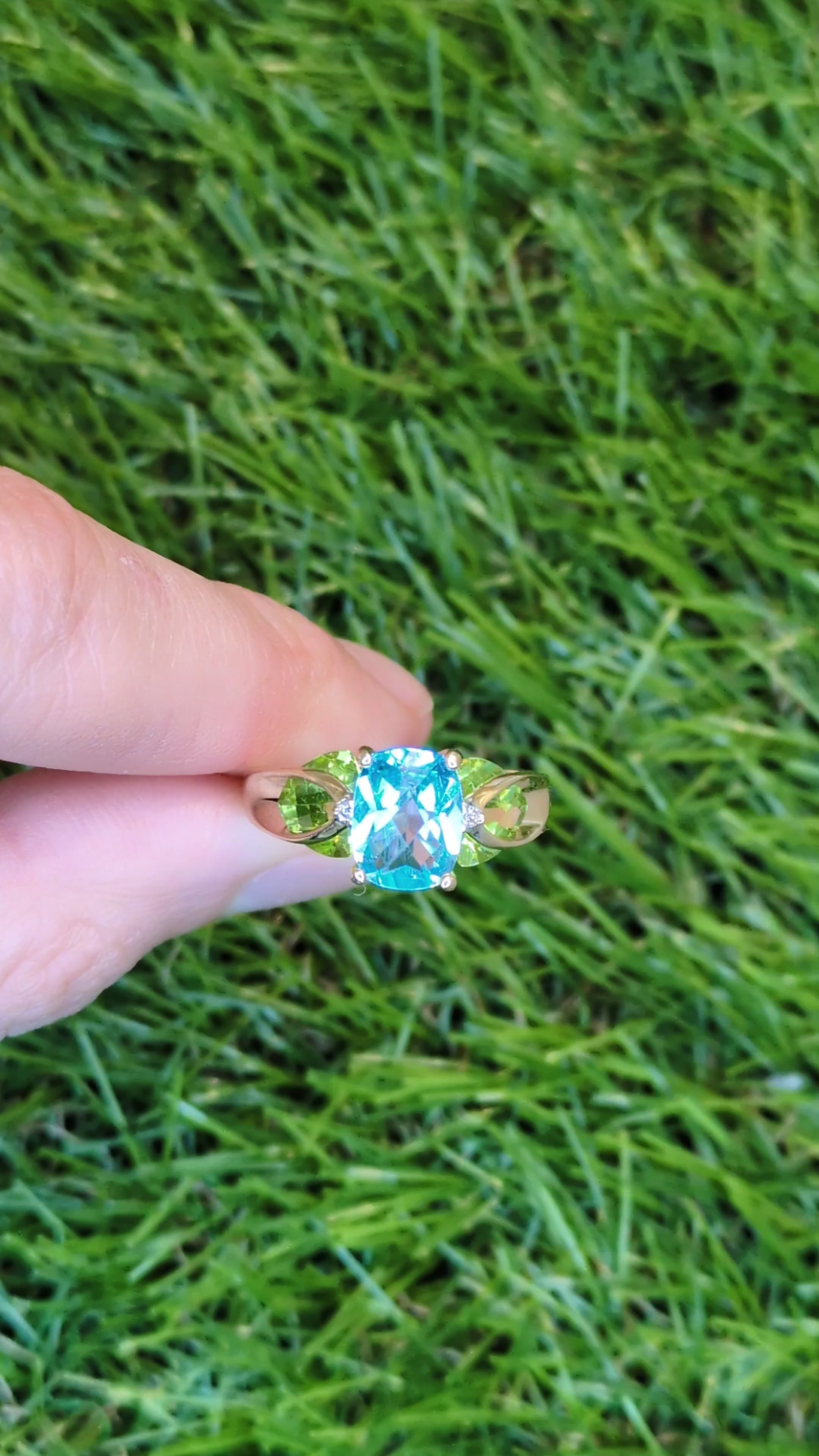 5.40ctw Blue Topaz Peridot Diamond Ring 14k Yellow Gold Size 7