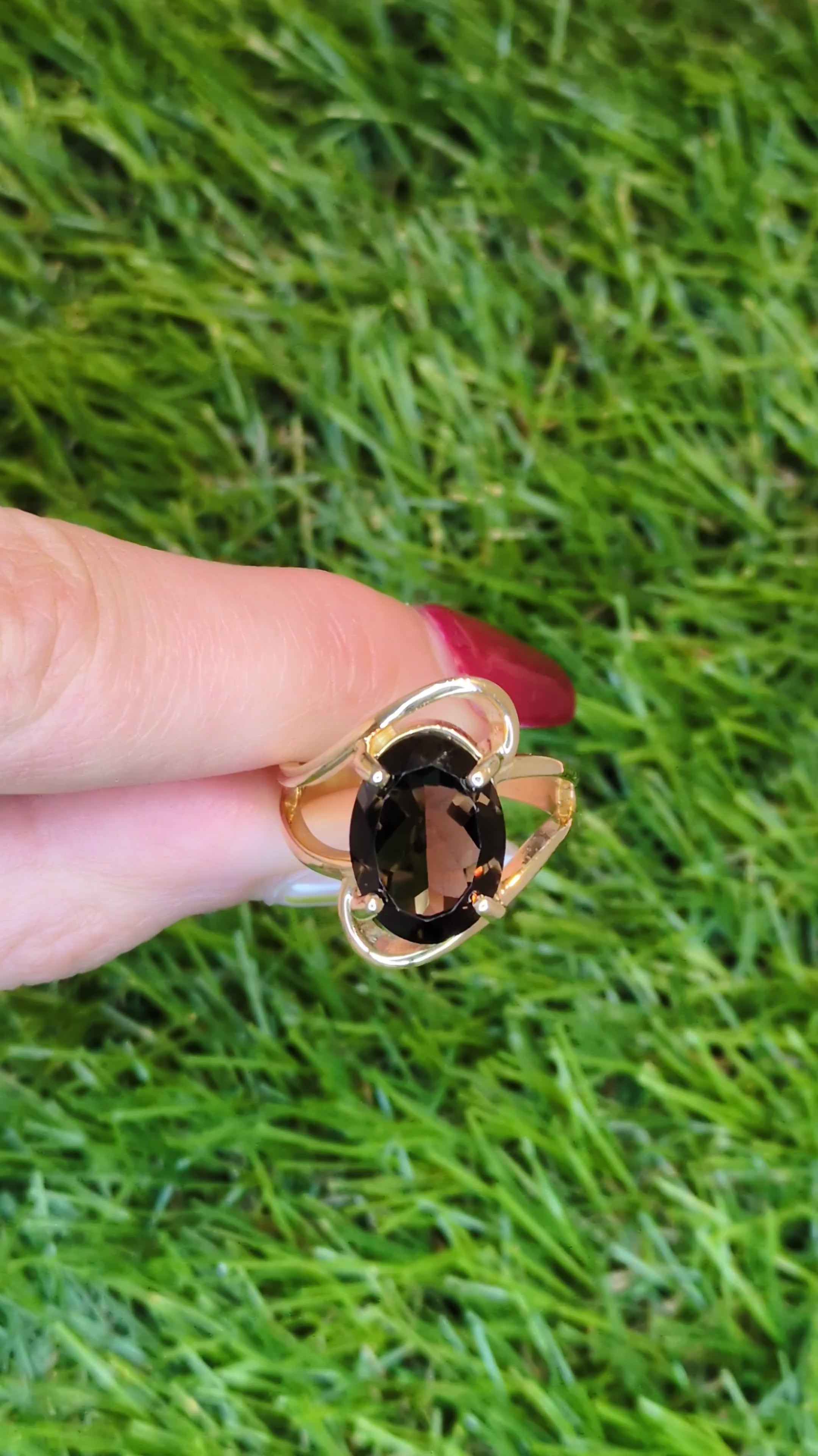 5.50ct Smoky Quartz Oval Solitaire Ring 10k Yellow Gold Cocktail Size 7.5-7.75