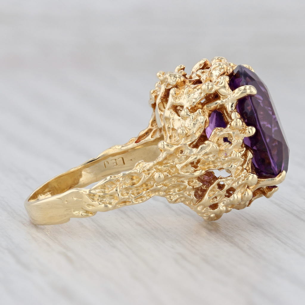 7.20ct Amethyst Oval Solitaire Ring 18k Yellow Gold Size 6 Gothic Floral
