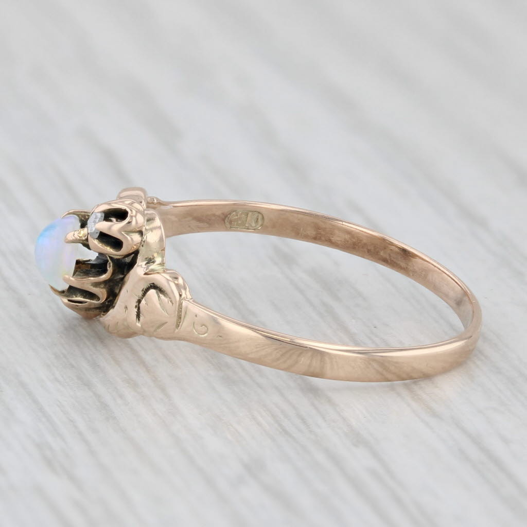 Antique Diamond Opal Bypass Ring 10K Yellow Gold Size 6.5