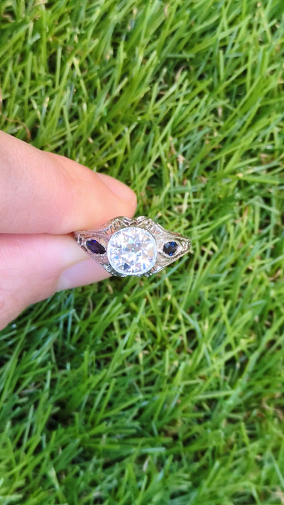 Art Deco 1.24ct Diamond Lab Created Sapphire Engagement Ring 18k Gold GIA