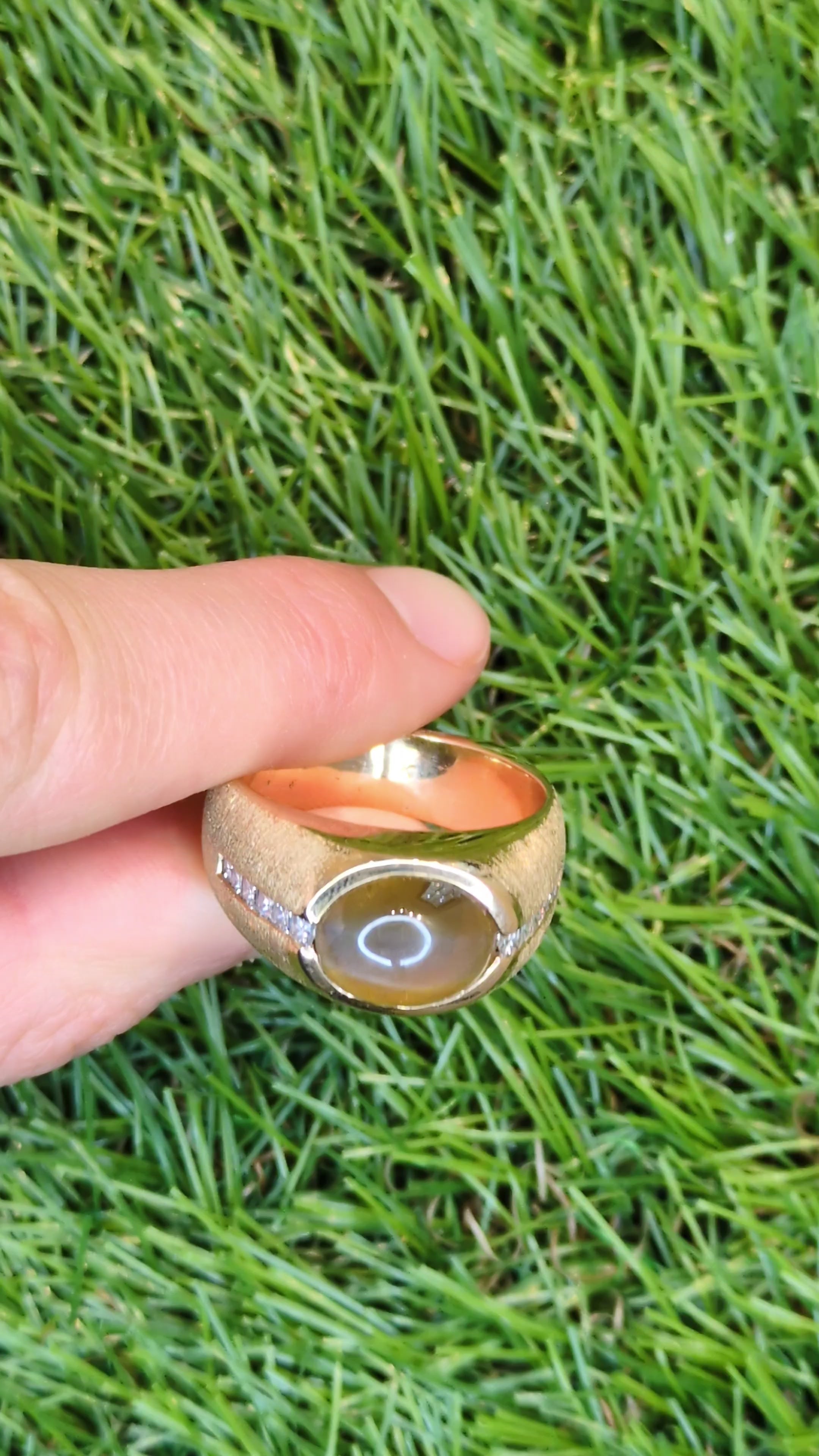 Brown Cat's Eye Chrysoberyl Diamond Ring 14k Yellow Gold Size 10.5 Men's GIA