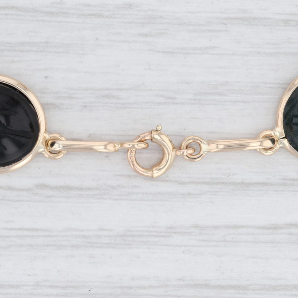 Carved Scarab Gemstone Bracelet 14k Gold 7.25” Quartz Agate Chalcedony