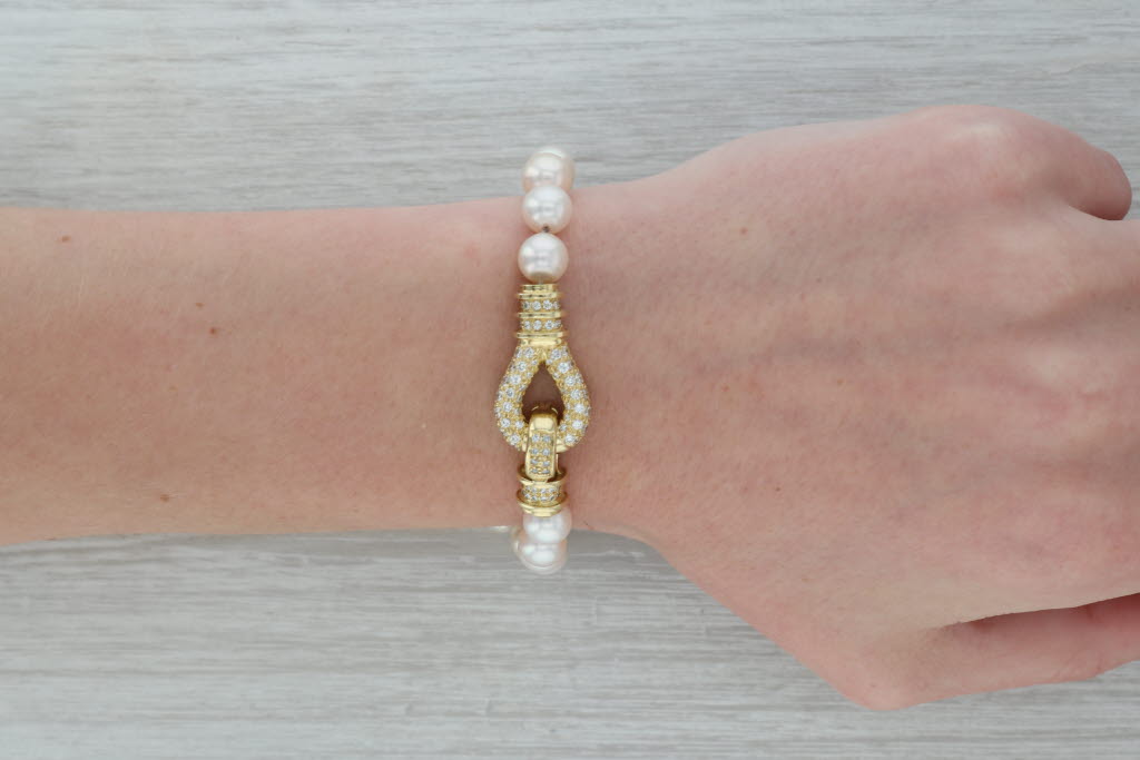 Cultured Pearl 1.13ctw Diamond Statement Bracelet 18k Yellow Gold 7.75"