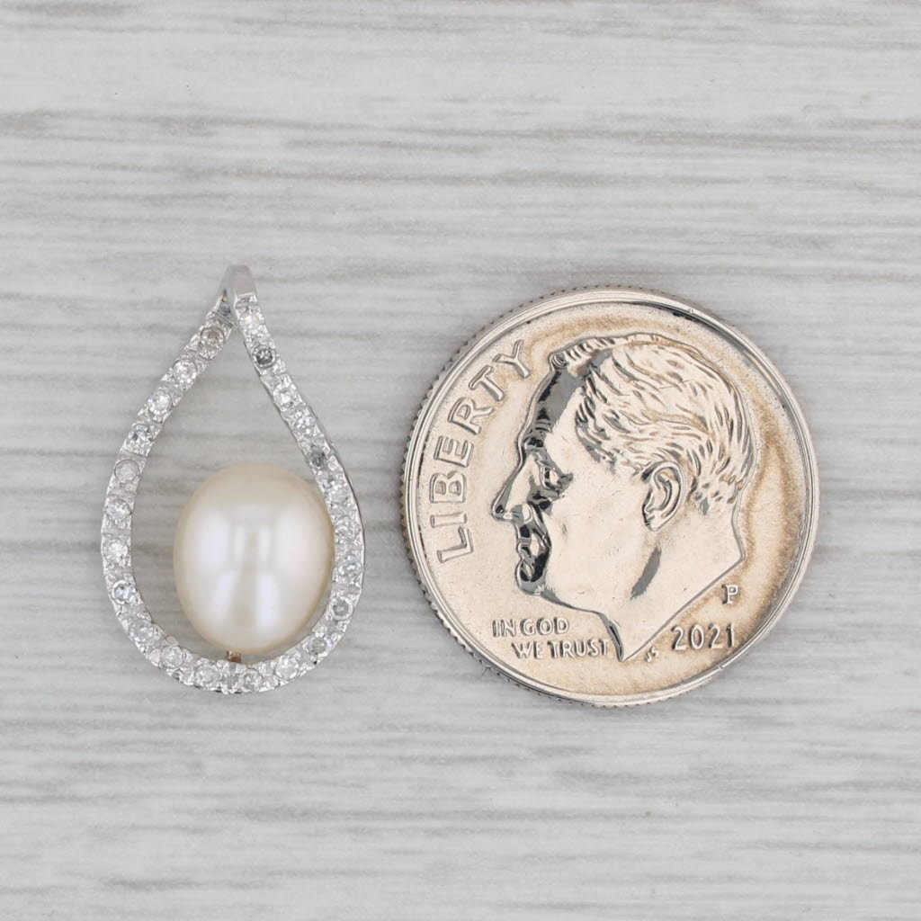 Cultured Pearl Diamond Teardrop Pendant 14k White Gold