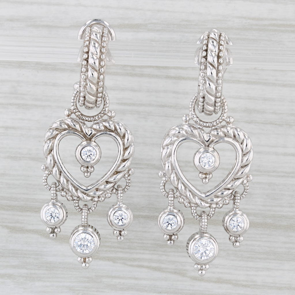 Judith Ripka Cubic Zirconia Heart Fringe Earrings Sterling Silver Omega Backs