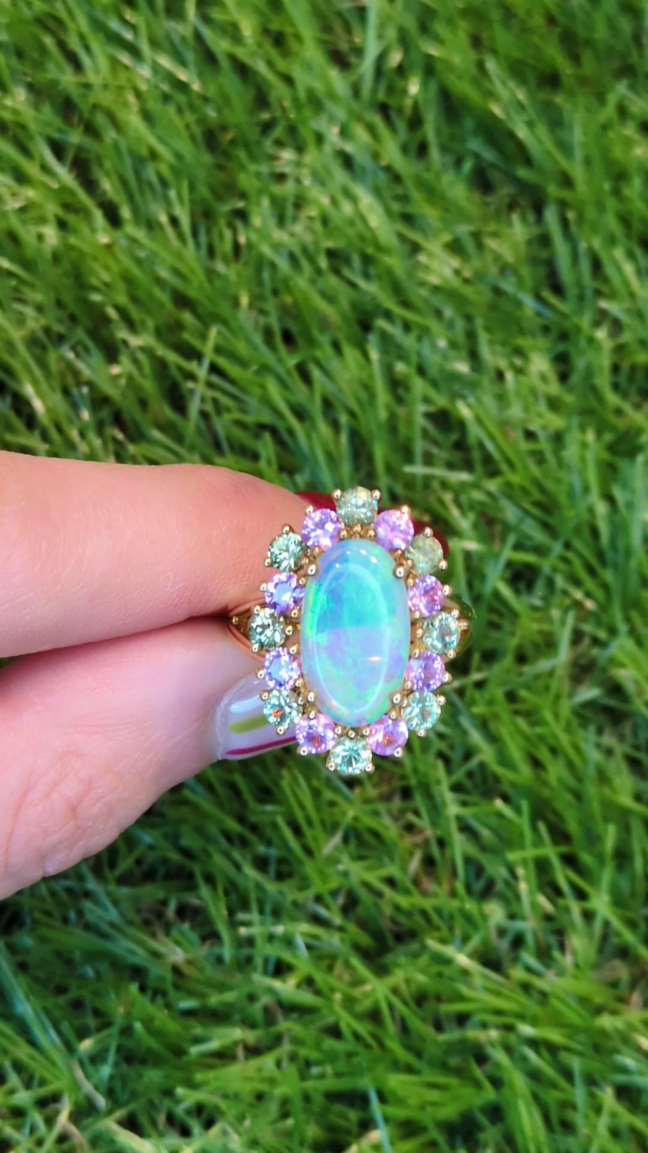 Karin Tremonti Opal Sapphire Halo Ring 18k Yellow Gold Size 7 Cocktail