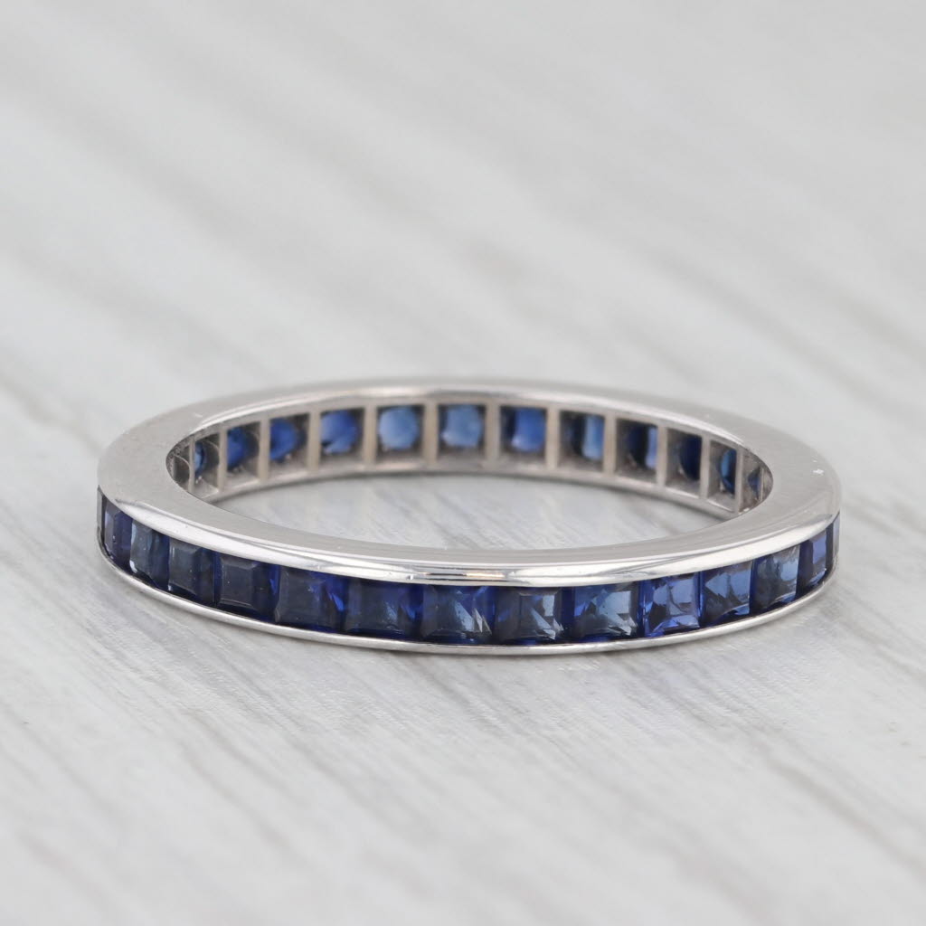 Lab Created Blue Sapphire Eternity Band 14k White Gold Stackable Wedding Ring
