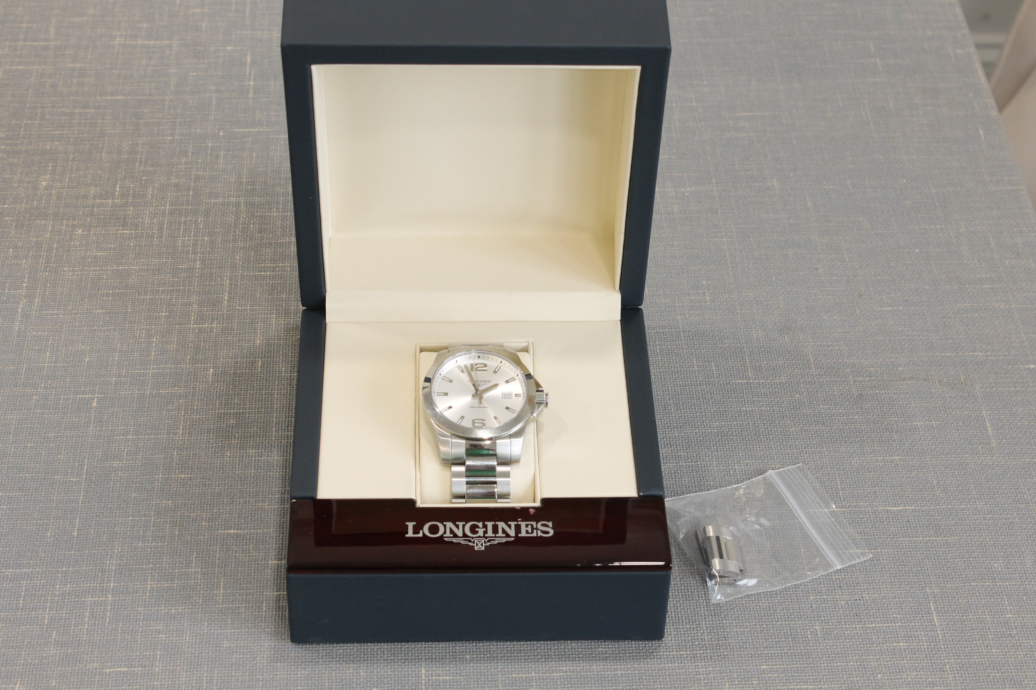 Longines Conquest Quartz Mens 41mm Stainless Steel Mens Watch w/ Bracelet & Box