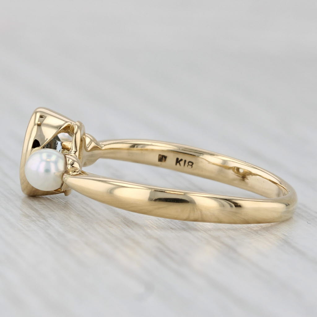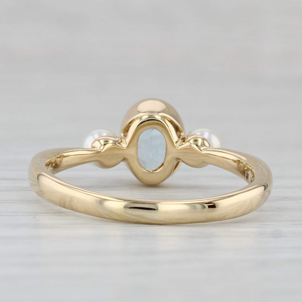 0.76ct Oval Aquamarine Cultured Pearl Ring 18k Yellow Gold Size 9