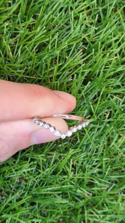 New 0.10ctw Diamond Ring 14k White Gold Contoured V Guard Size 6.5 Wedding Band
