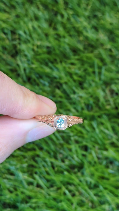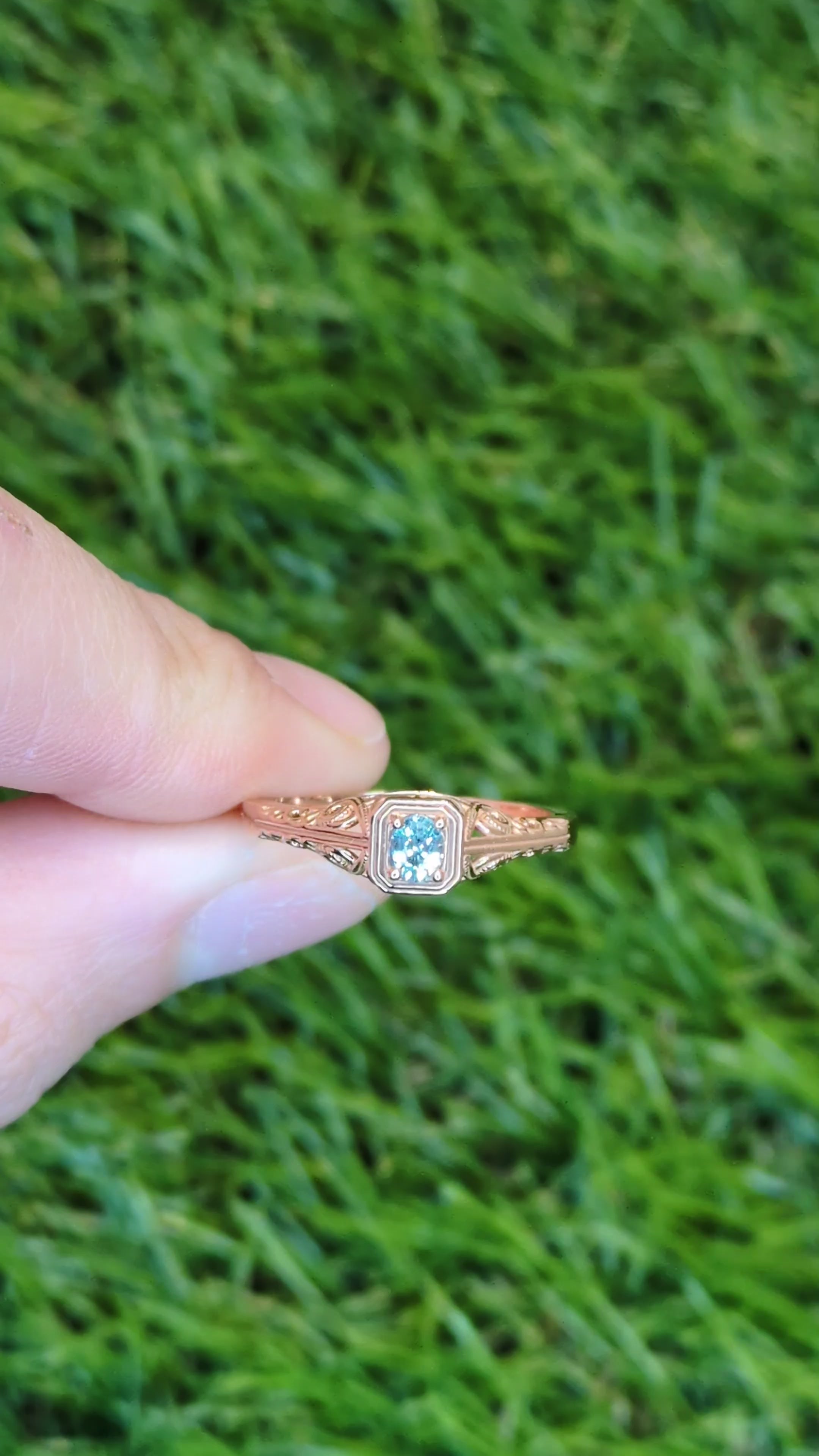 New 0.18ct Green Alexandrite Ring 14k Rose Gold Size 6.5 Oval Solitaire Filigree