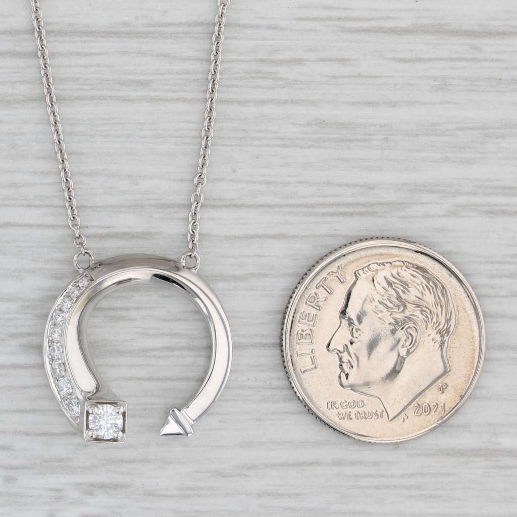 New 0.20ctw Diamond Cuff Pendant Necklace 14k White Gold Cable Chain 17"-18"