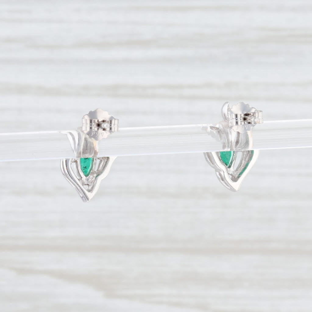 New 0.26ctw Emerald Diamond Stud Earrings 14k White Gold May Birthstone Marquise